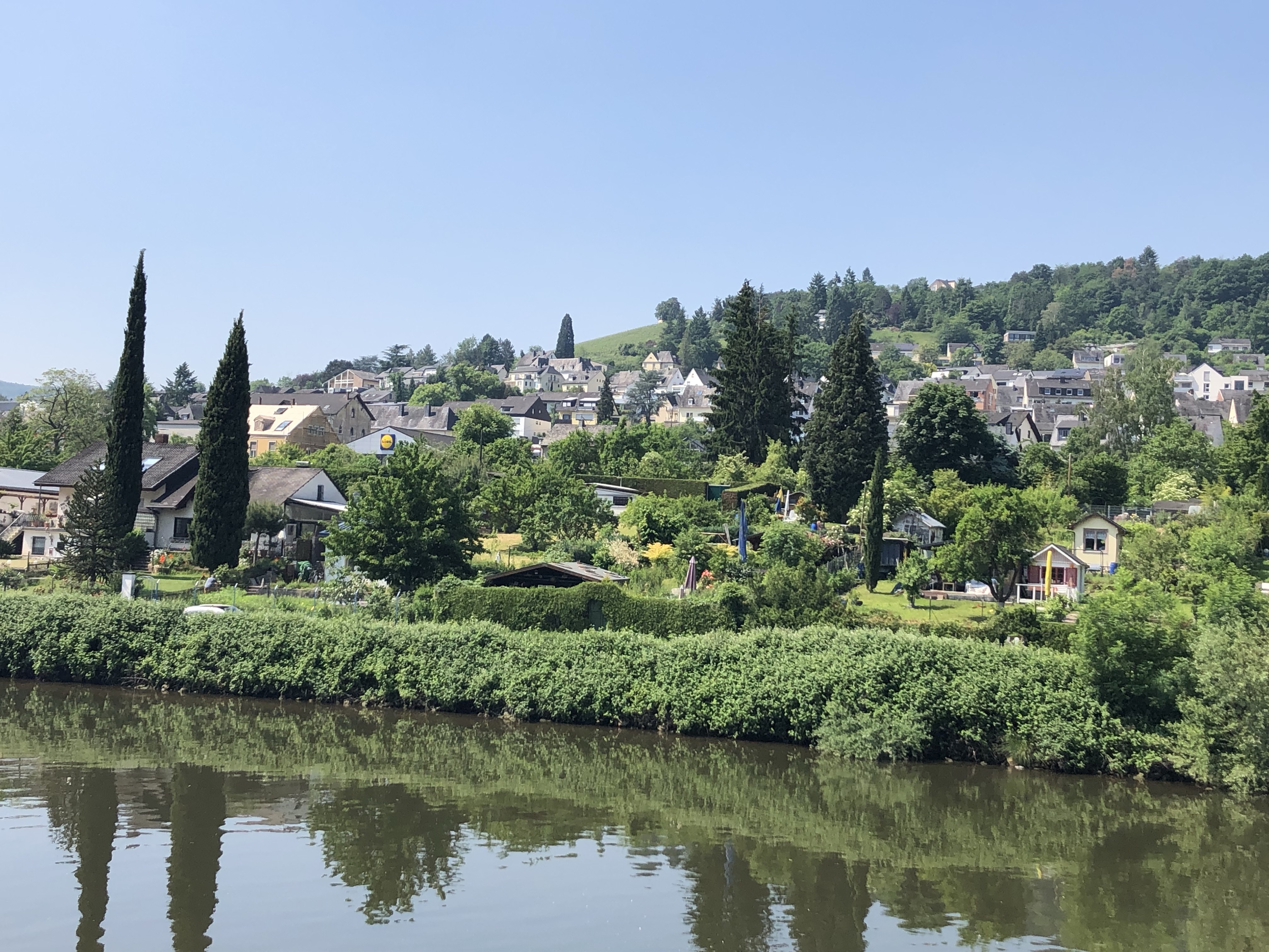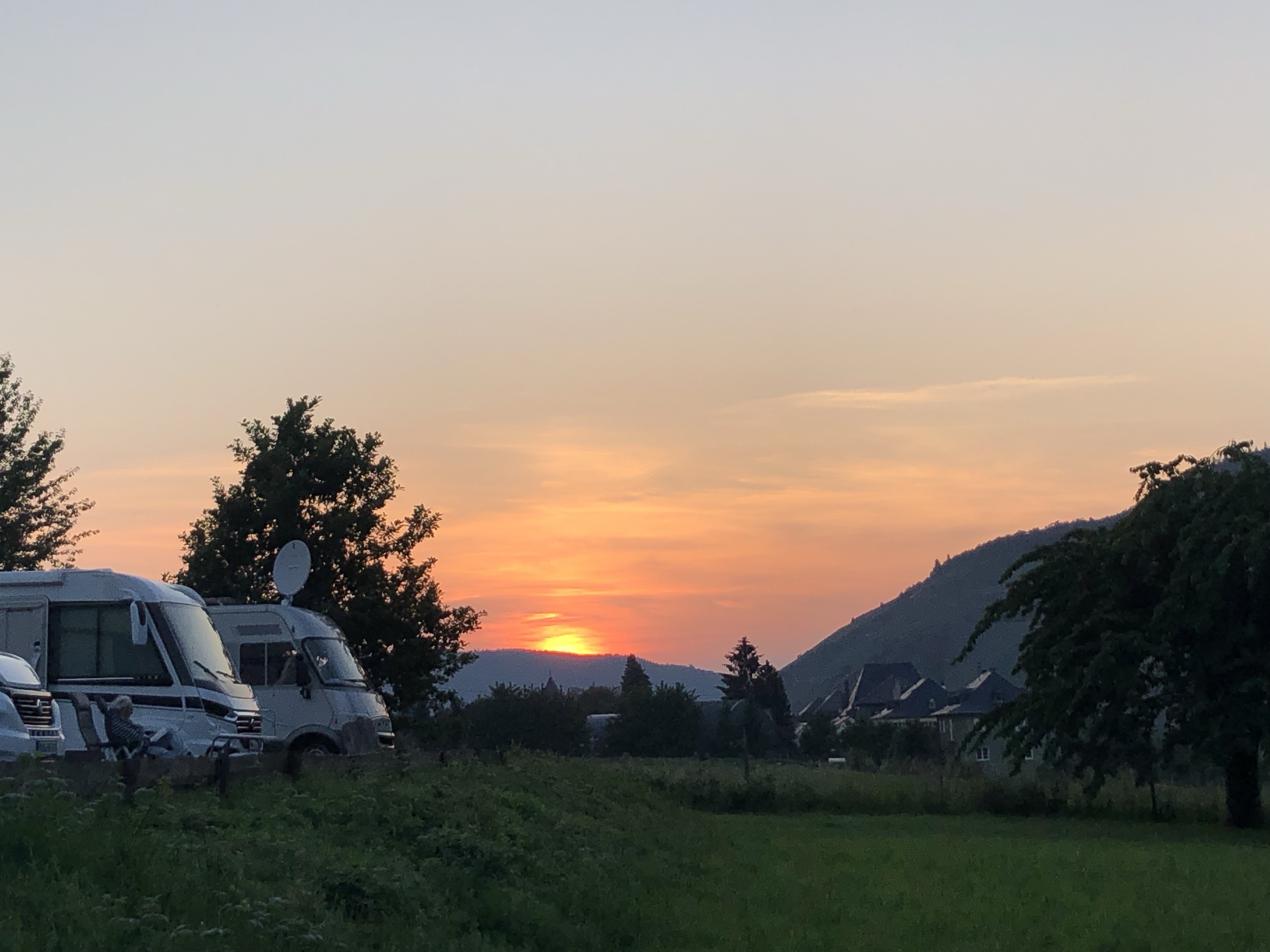 Dieser Campingplatz ist wunderschön am Ufer der Mosel gelegen und ermöglicht uns, zumindest Kathi, 😃 einen wunderschönen Ausblick auf die Mosel.